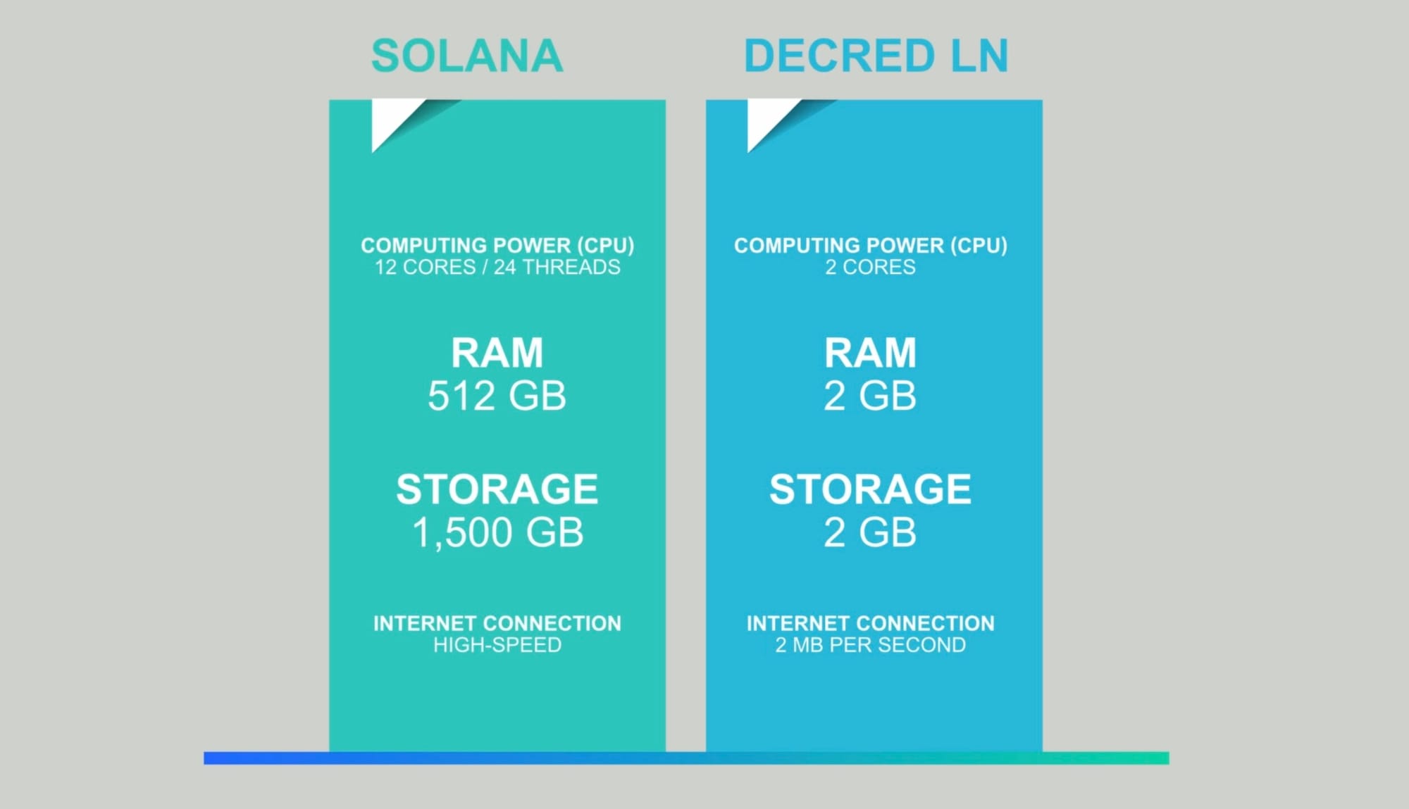 In comparison, Decred’s Lightning Network is run using the platform's Lightweight SPV mode. Which requires less than 2 GB of storage, 1 GB of RAM and can operate seamlessly over an internet connection of approximately 2 MB per second.