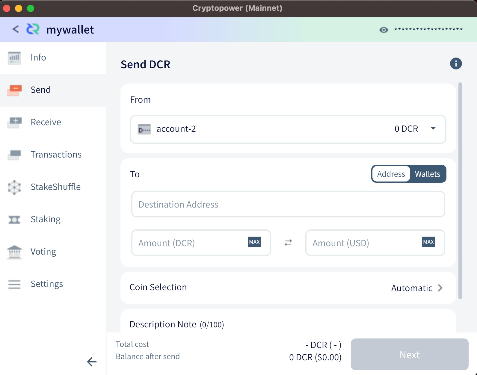 Cryptopower is a multi-coin wallet for DCR, BTC and LTC designed for both desktop and mobile platforms. With the entire app written in a single programming language (Go - the primary language used in Decred), Cryptopower aims to achieve better efficiency, security, and portability, compared to existing Decred wallets.