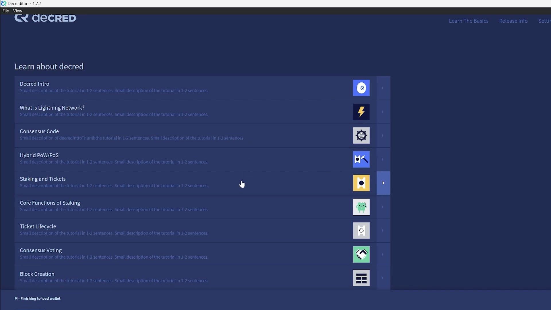 Image: New launcher views - learn about Decred while the wallet is syncing