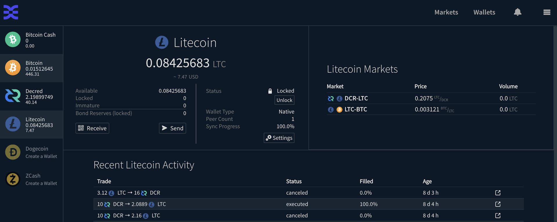 - Built-in LTC wallet can be slow to get started as it searches for a node that supports compact block filters. Users can go to DEX wallet page, click Litecoin -> Settings -> Manage Peers, and manually add one peer from this list to help boostrap the process.
