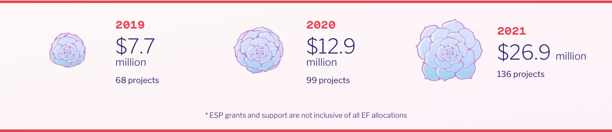 Dedicated to fortifying the core foundations of Ethereum and empowering future innovators. ESP focuses on enhancing infrastructure, broadening the array of tools accessible to Ethereum builders, advancing knowledge of cryptographic primitives, and fostering growth within the builder ecosystem through community development and educational initiatives. The projects and initiatives support adhere to the principles of being free, open-source, non-commercial, and geared towards creating positive-sum outcomes for the Ethereum community and beyond.