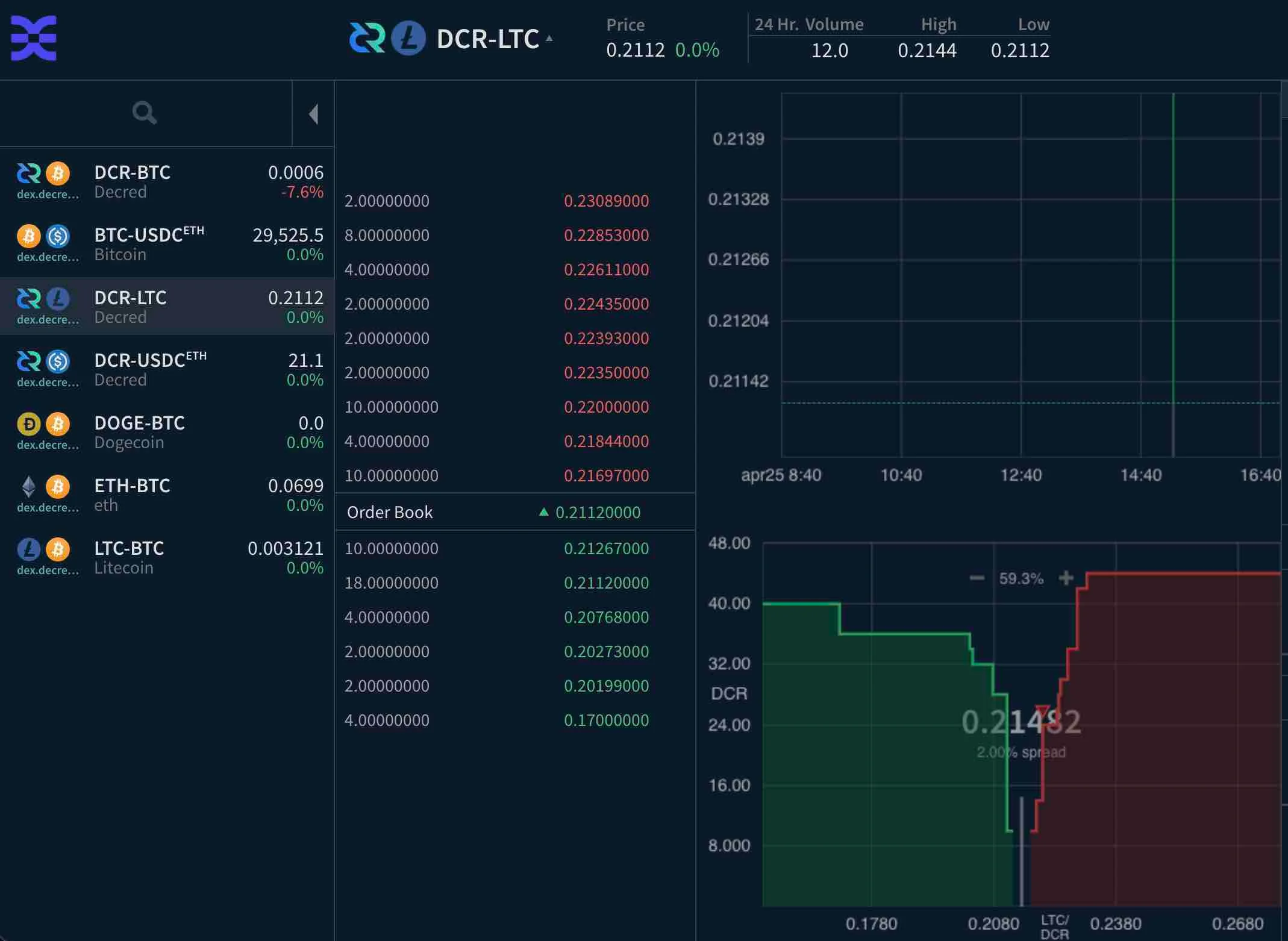 The best application for DCR owners to trade is DCRDEX, Decred's decentralized exchange. Users can trade coins like Bitcoin, Ethereum, USDC, Litecoin, Digibyte, Doge, and other cryptos with no arbitrary fees. DCRDEX follows Decred's ethos letting only users profit from their financial activity.