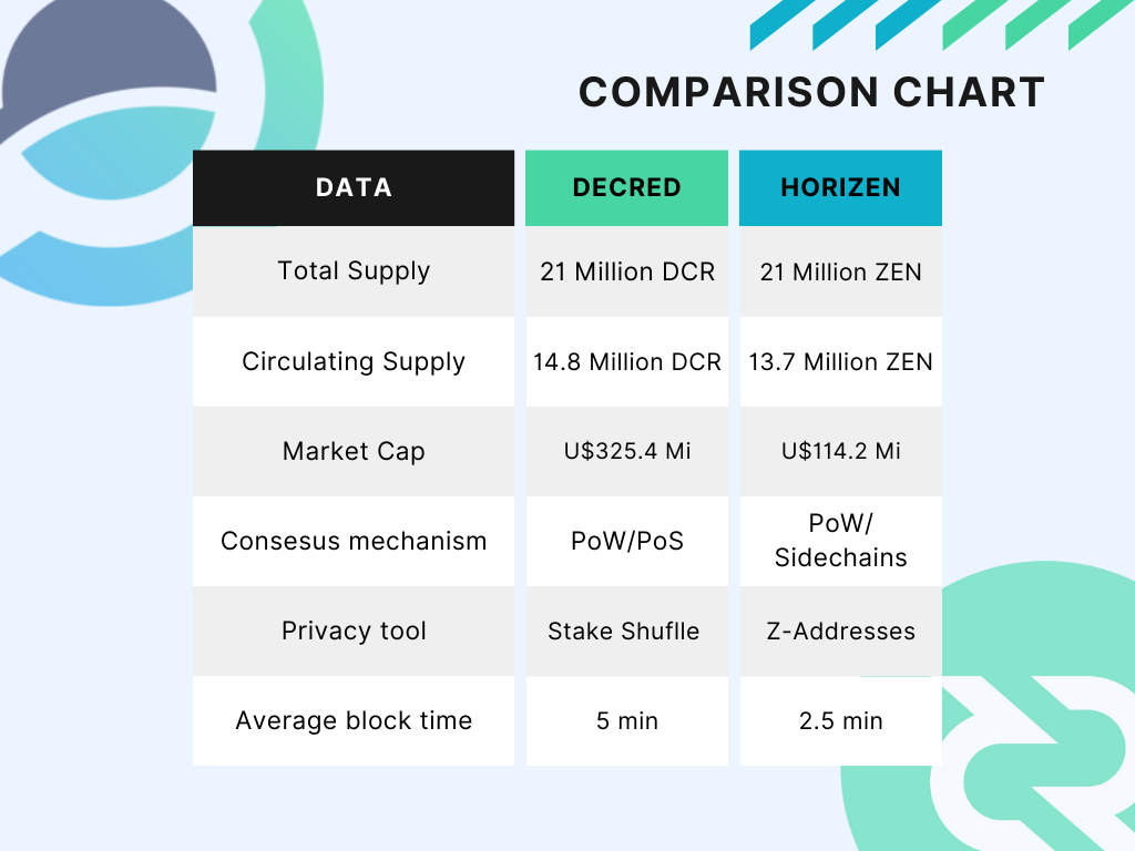 Horizen is an interoperable blockchain ecosystem, with a decentralized multi-tiered node infrastructure. The project's mission is to provide data integrity and privacy freedom, creating a trustful platform where business, information, and personal interactions can be conducted transparently. Let's compare Horizen and Decred to check how their platforms go beyond crypto.