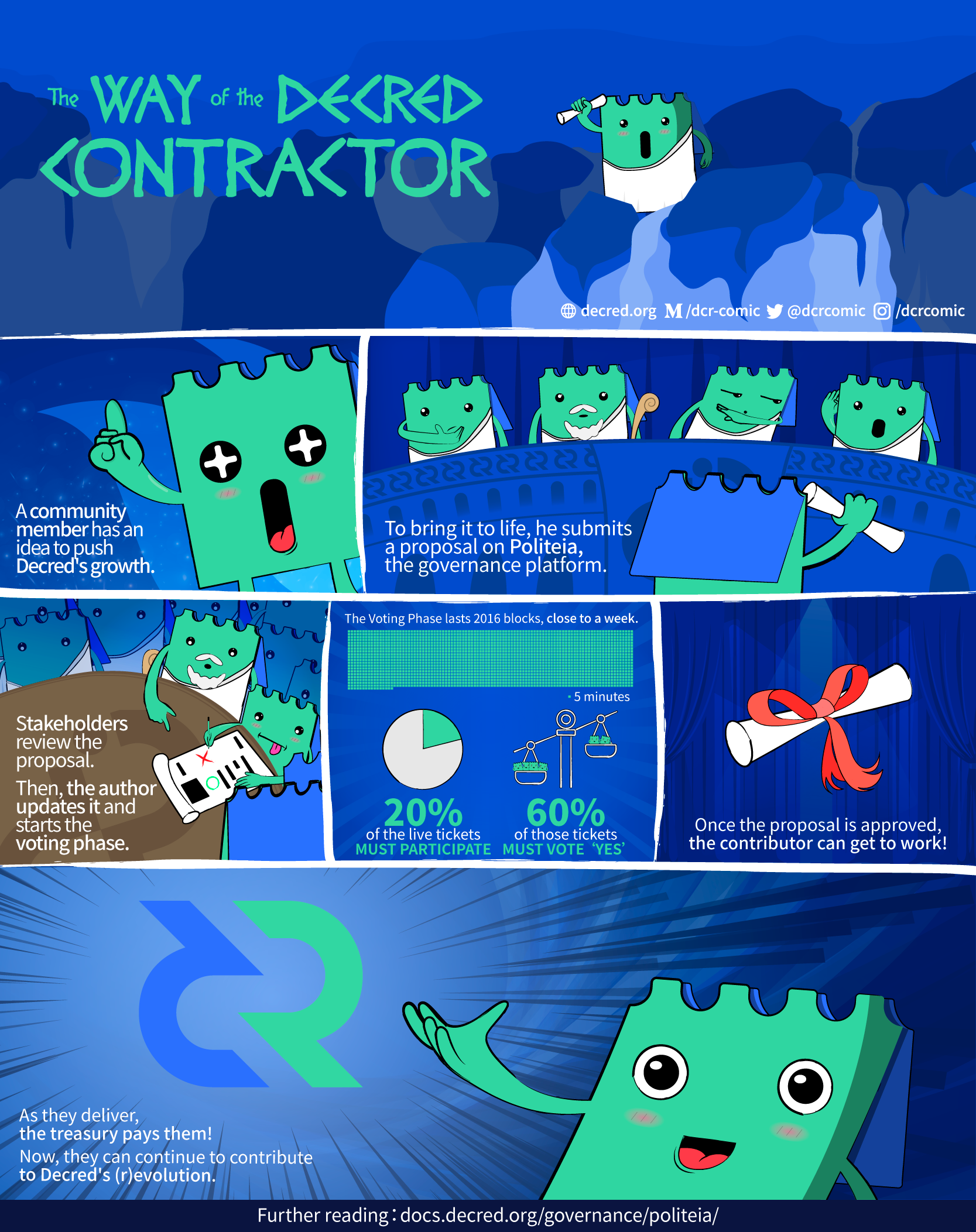 How does Decred’s decentralized treasury work? What is Politeia? How do I present a proposal? We could answer those questions, but there is a comic for that! Here is the first issue of the DCR Comic.